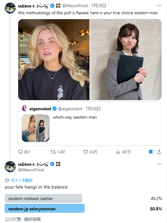 日本人女性タレントさんがXに掲載した「オフィスレディ写真」が海外で爆発的な人気に…イーロンも参戦[海外の反応]