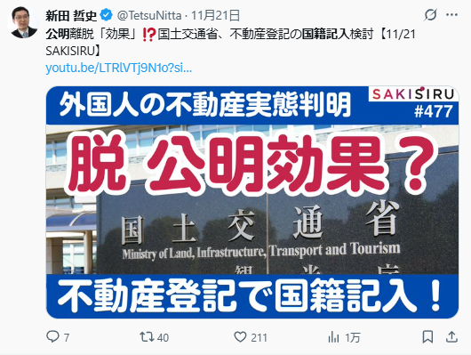 日本の高市新総理によって、外国人問題担当に任命された小野田紀美氏は、不法外国人の大規模強制送還を検討している。