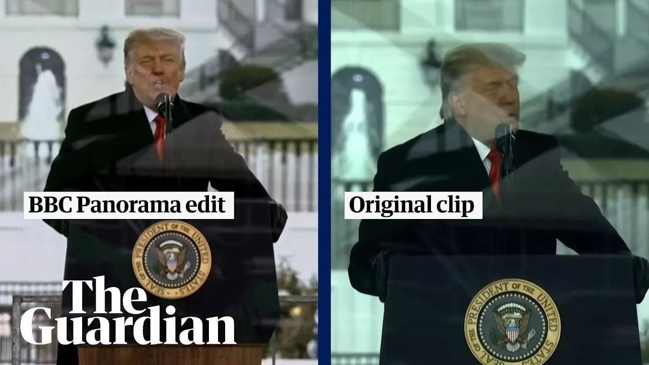 BBCの内部文書を基に報じたテレグラフ紙によると、映像は昨年10月のドキュメンタリー番組で放送された。トランプ氏は演説で「われわれは議会へ向かう」と呼びかけた後、実際には「平和に、愛国的に皆さんの声を届ける」と述べていたが、映像では「そして死に物狂いで戦う」と続くように編集された。
