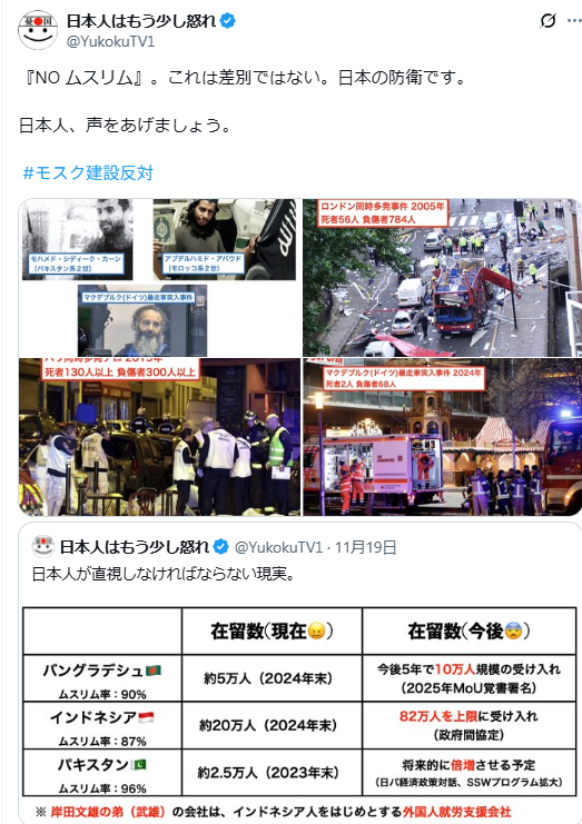 移民推進の政党に票を入れてる人達はある意味加担者みたいなもんだな