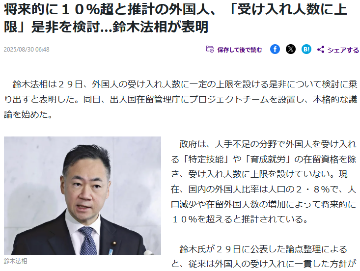 最近、メディアやシンクタンク等で「今後外国人割合が10%を超えることが見込まれる日本」的な枕詞をよく聞く。まるで「既定路線」かの如く。