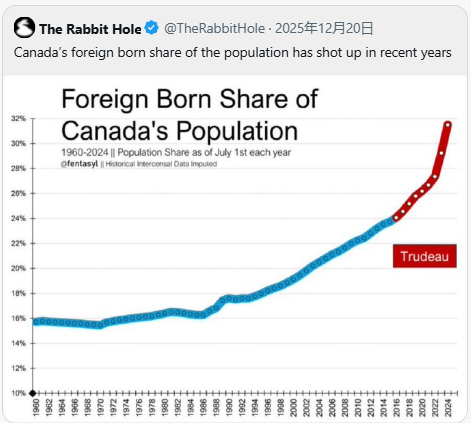 カナダでもトルドー政権下において「外国人割合」がエグイ位増加してるよ。