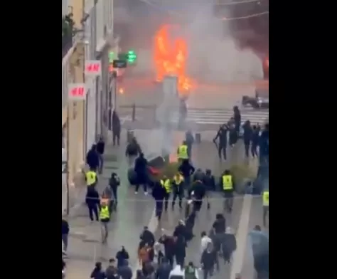 仏:クルド人デモ隊の一部が暴徒化し放火や店舗破壊…警察官にケガ人も