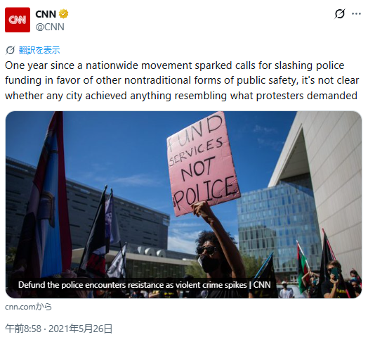 無政府主義者、警察いらない論みたいなのが左翼の絶頂期にBLMと共に声高に叫んでいたよなぁ