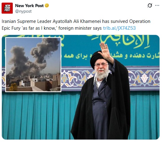 米NBCの取材に答えたイラン外相Abbas Araghchi氏は「私が知る限りハメネイ師は生きている」と述べ、イラン最高指導者の生存を示唆した。