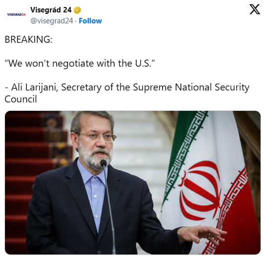 イラン国家安全保障最高評議会書記アリー・ラーリージャーニー氏は、正式に米国との休戦交渉要請を否定してるぞ?