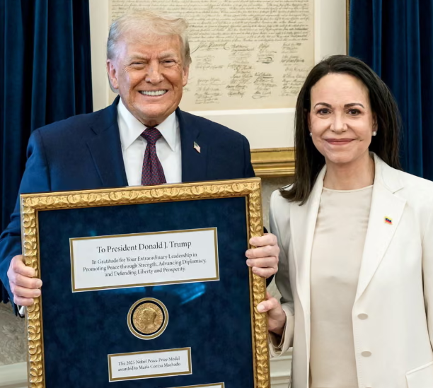 あまりにも「平和賞」が欲しすぎて、(前回の受賞者であるベネズエラの民主化活動家)マリア・コリーナ・マチャド氏に頼み込んで、受賞メダルをもらってたよねw