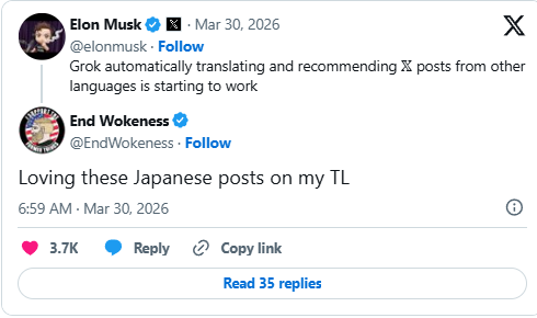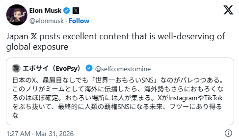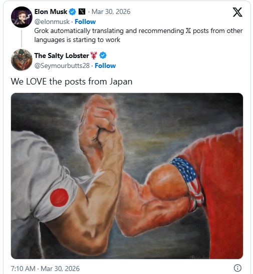 今回の機能に関してイーロン・マスク氏は「日本の優れたコンテンツは世界に広める価値がある」と主張。これに対して、英語圏の人々から賞賛の声が相次いだ。