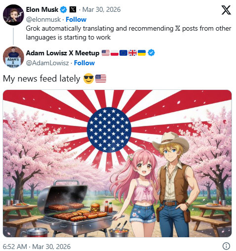 先日、大手SNS「X」は「全自動翻訳機能」を実装。日本語で投稿された内容が、世界のユーザータイムラインに各国言語で表示されるようになり、大きな注目を集め始めている。(*特にX利用者が世界一の米国で話題になってる。)