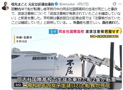 よかった。70名ちかい「寄生虫」が海の藻屑となった。これで税金の無駄遣いが減る。