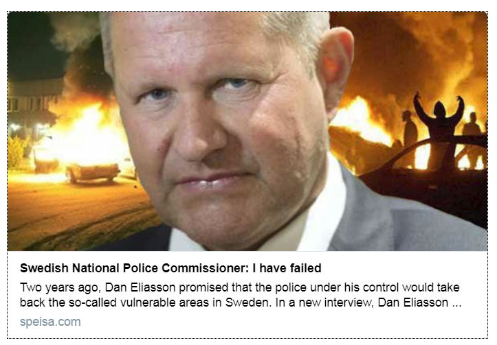 スウェーデン警察庁長官であるDan Eliasson氏が、ラジオ局による取材に対して、”*警察管理外地域(vulnerable areas)”の治安回復に失敗したことを認めた。Eliasson氏は警察庁長官に就任した二年前、スウェーデン国内に存在している”*警察管理外地域(vulnerable areas)”の奪還を宣言していたが、その約束が破られることとなった。Eliasson氏は自らの責任を認めつつ、同国の政治家による現状認識の”乏しさ”について、批判を繰り広げた。