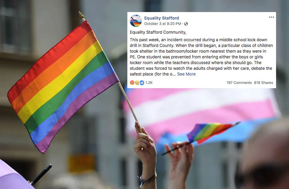 先週、ヴァージニア州スタフォード郡の中等学校において、体育の授業中、「銃乱射事件等を想定した避難訓練(a lockdown drill )」が行われた。その際、トランスジェンダーの生徒一名が、避難場所となっている更衣室への入室を(*教師の判断で)断れていたことがわかった。